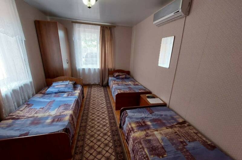 В наличии 3-х и 4-х местные номера. В номере, телевизор, сплит-система, бесплатный WI-FI, санузел (душ с горячей водой, раковина, унитаз), мебель, утюг с гладильной доской, ортопедические, гипоаллергенные матрасы и подушки-новые к сезону 2024 года.