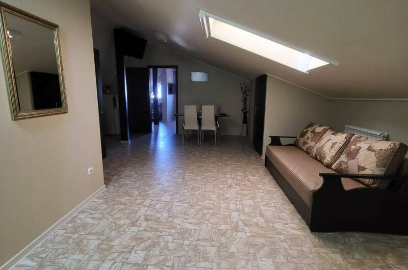 Рядом магазины, столовые. Гостевой дом находится в начале Таганрогской набережной. Парк им. Поддубного в 10 минутах ходьбы, рядом с парком овощной рынок. На набережной находится дельфинарий, океанариум, аквапарк.