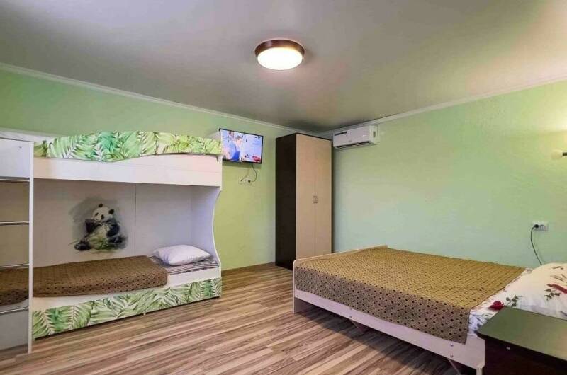 Мы располагаемся в тихом, престижном районе на берегу Азовского моря. Гостевой дом «Райская сказка» находится в непосредственной близости в 100 метрах к морю, берег широкий, песчаный, это удобные ракушечно-песчаные пляжи с пологим входом в море, что оптимально для отдыха с детьми. Для детей предусмотрен батут, теннис, качели. Готовят гости на общей кухне. К вашим услугам однокомнатные комнаты со всеми удобствами. Рассчитаны комнаты на проживание 2−4, 5,6гостей, два отдельных дома на 6 человек, со всеми удобствами, и отдельной кухней, в одном из них находится сауна. Микроклимат создается кондиционером.