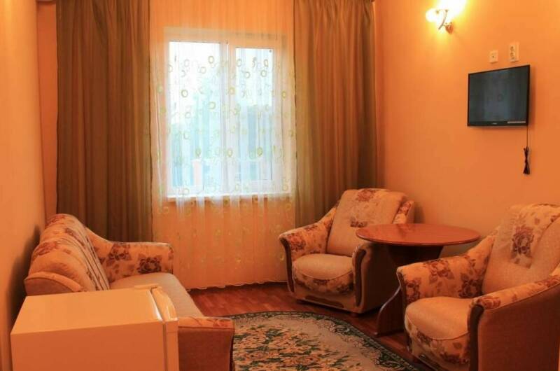 Большой двор, парковка, мангал, детская площадка, фонтаны, лавочки, веранды способствуют спокойному отдыху взрослых и детей. Летняя кухня дает возможность питаться самостоятельно. Во дворе построен летний душ, в номерах круглосуточно подается холодная и горячая вода.