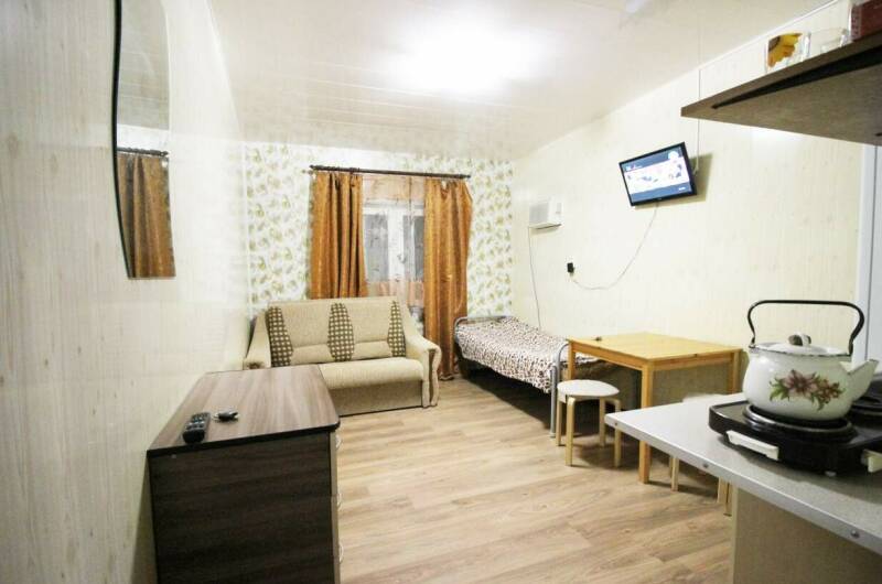 В каждом номере есть индивидуальная кухня и ванная комната, ТV (кабельное), холодильник, сплитсистема, двуспальная кровать, двуспальный диван, односпальные кровати, шкаф, комод для одежды, стол, стулья. Вода горячая и холодная круглосуточно.