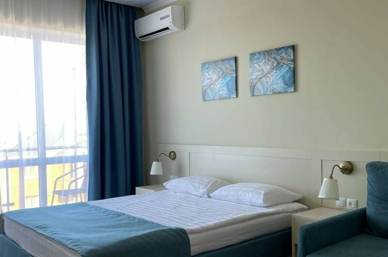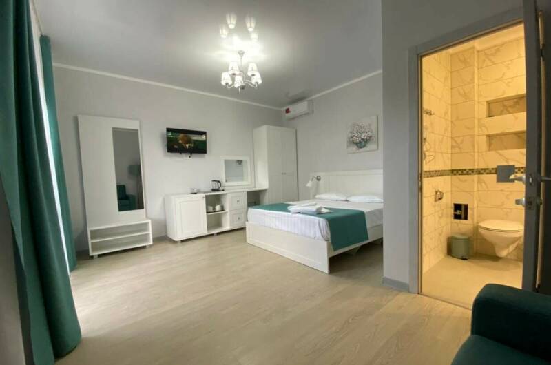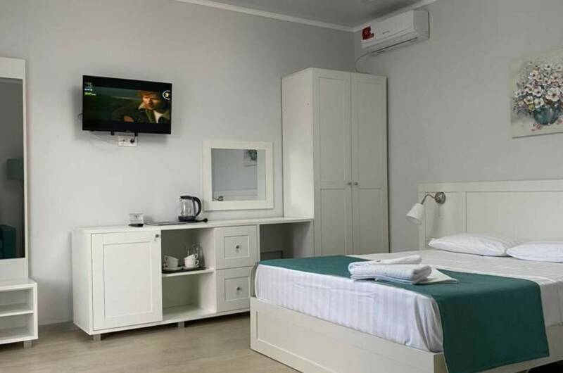 Уютная гостиница для семейного отдыха на берегу моря с тёплым бассейном, детской площадкой, столовой (возможно заказное комплексное питание за отдельную пату) и всем необходимым для комфортного отдыха.